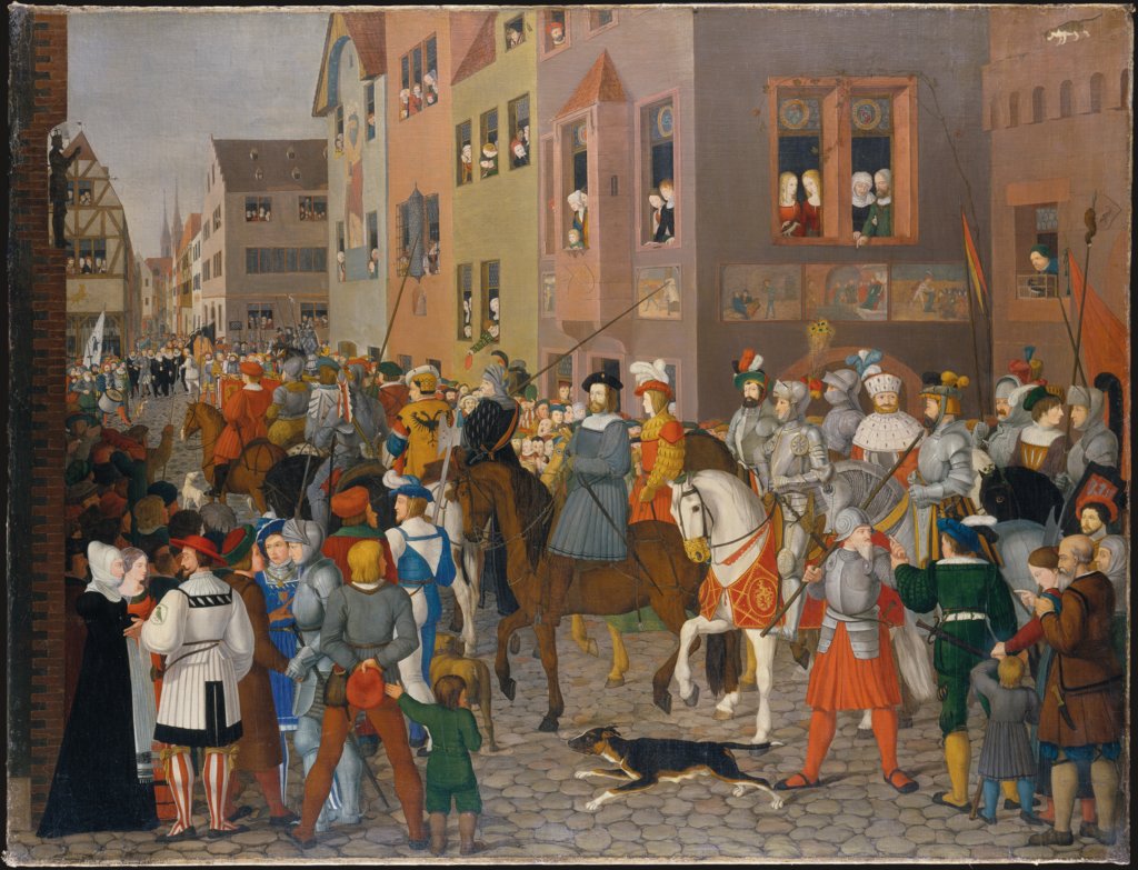 Ein Mönch mit Tonsur, Pferdeknechte.